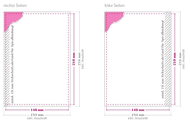 Verarbeitung: Metall-Spiralbindung an der langen Seite in Silber, Weiss oder Schwarz (bitte bei der Bestellung im Kommentarfeld angeben)