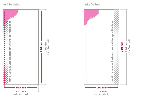 Verarbeitung: Metall-Spiralbindung an der langen Seite in Silber, Weiß oder Schwarz (bitte bei der Bestellung im Kommentarfeld angeben)
