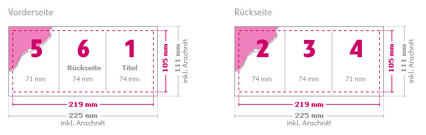 Format: offen: 219 mm x 105 mm, geschlossen: 74 mm x 105 mm