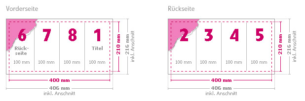 Format: offen: 400 mm x 210 mm, geschlossen: 100 mm x 210 mm