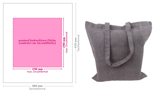 Material: 100% recycelte Baumwolle, ca. 38 x 42 cm mit 2 lange Henkel